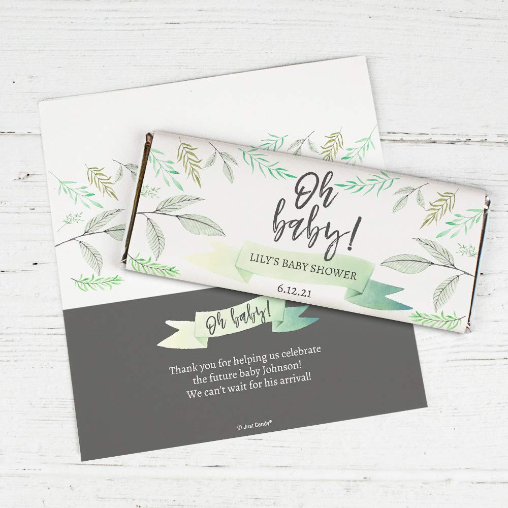 Make your baby shower extra special with these 25ct personalized chocolate bar wrappers from Just Candy. Each pack contains 12 beautifully wrapped bars. Perfect for celebrating the arrival of your little one!