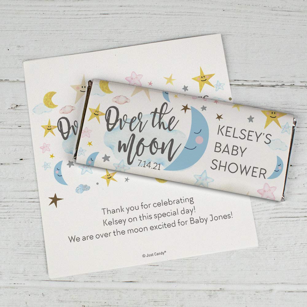 25ct Personalized Baby Shower Chocolate Bar Wrappers – Over the Moon Brand