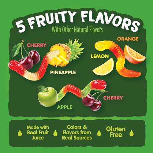 "Real Fruit Juice Gummy Worms, 22oz Resealable Bag, Cherry Pineapple Lemon Orange Apple Cherry"