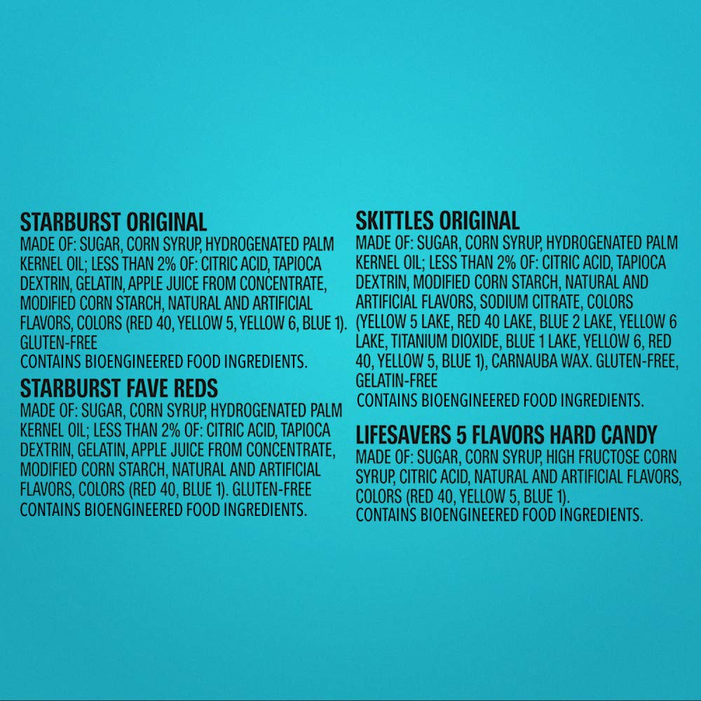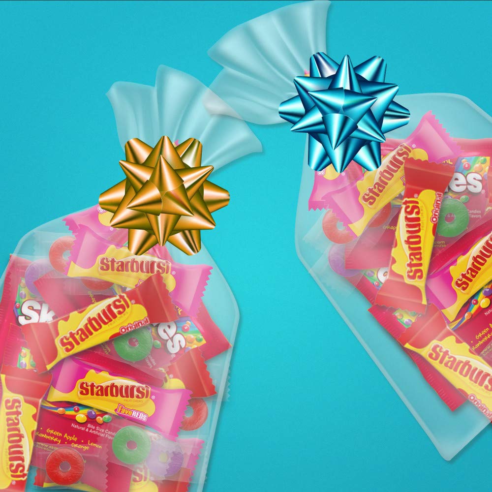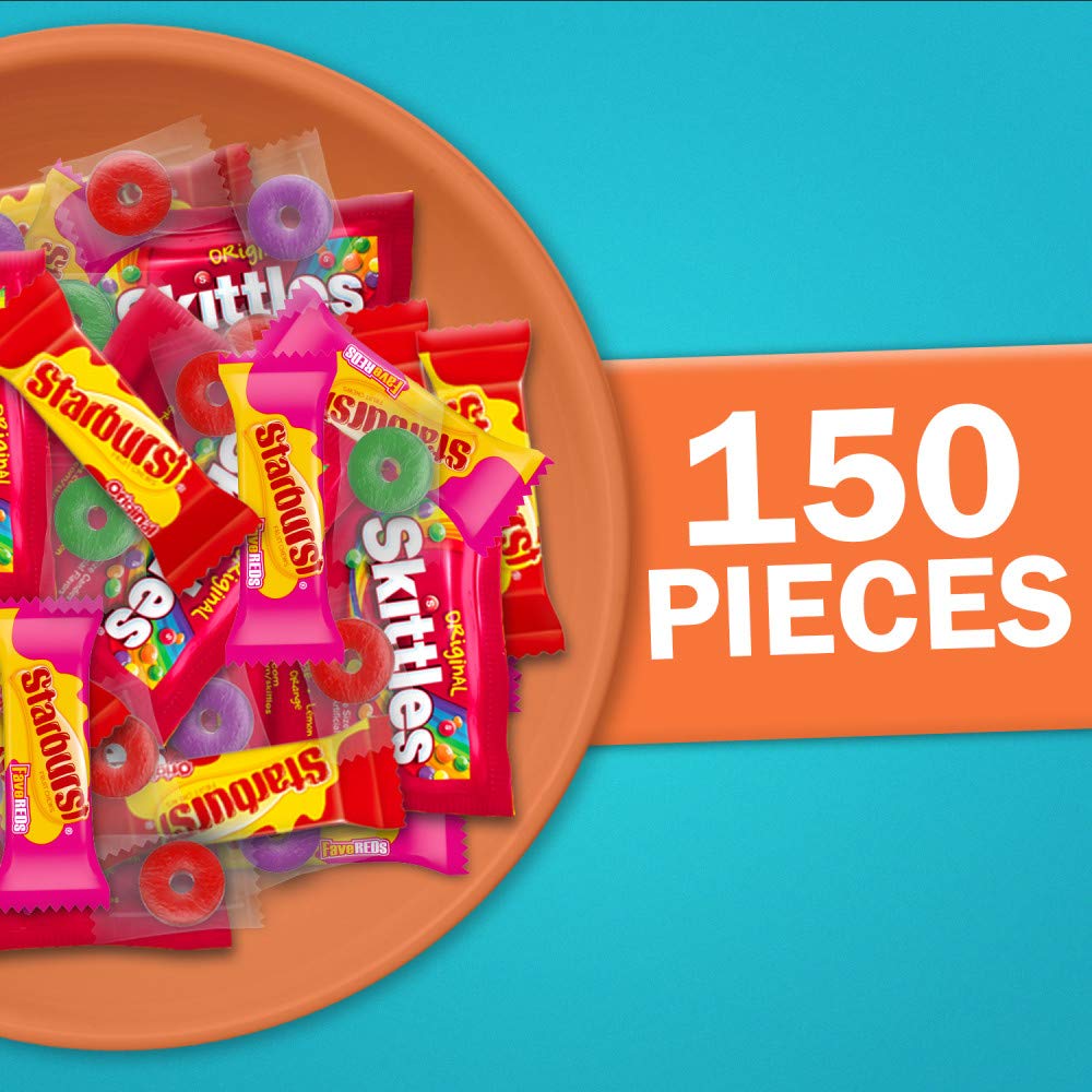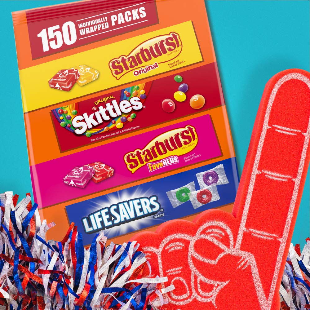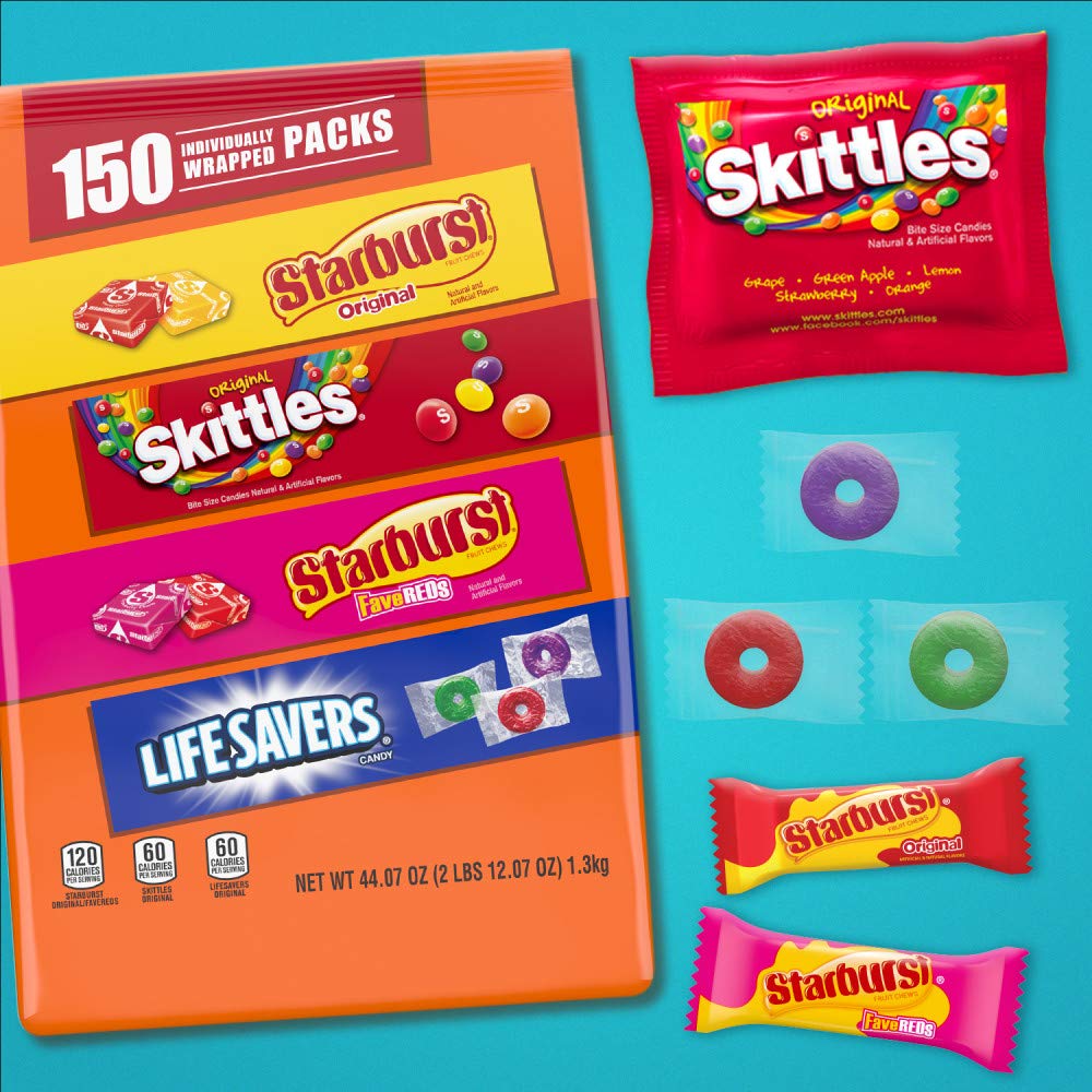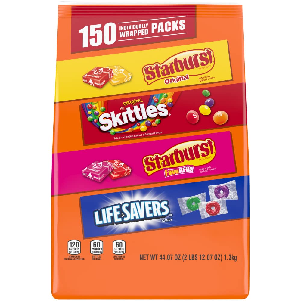 Get ready to satisfy your sweet tooth with this bulk candy assortment featuring SKITTLES, STARBURST, and LIFE SAVERS. This 44.07-ounce bag contains 150 individually wrapped pieces of fruity goodness.