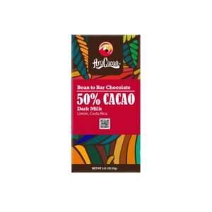 Indulge in AraCacao’s 50% Dark Milk Chocolate, a gluten-free treat made in Costa Rica. Direct-trade cacao, kosher certified, and free of soy lecithin.