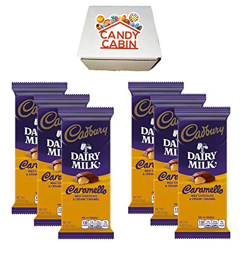 Discover a delectable assortment with the Cadbury Chocolate Candy Bar Variety Box from CANDY CABIN. This 6-Count pack features full-size bars in the luscious CARAMELLO flavor, each weighing 3.5-4 ounces.
