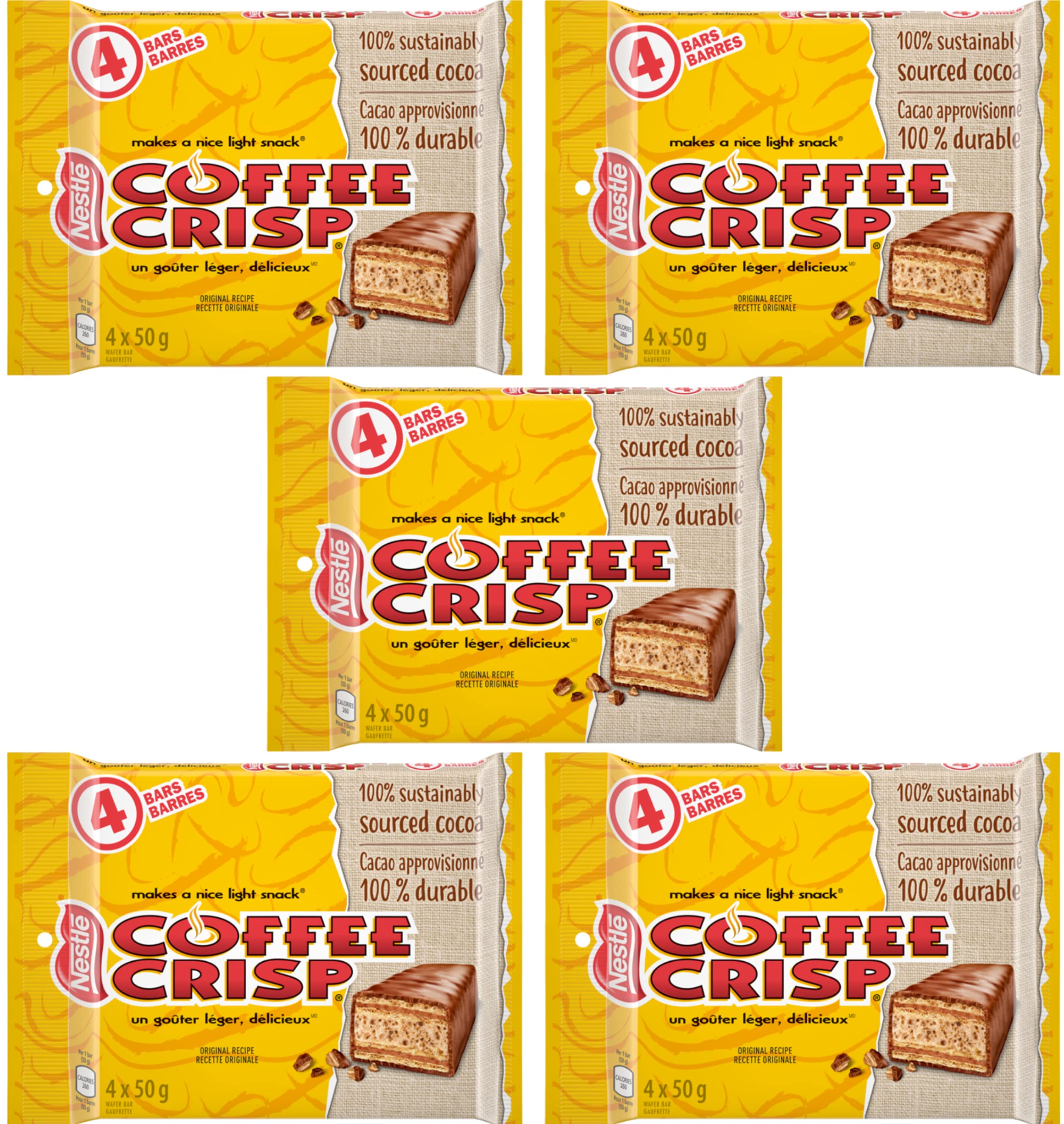 | Features | Delicious wafer layers coated with smooth Nestle chocolate. 4 x 50g bars in a package. Coffee cream, cookie wafers with a milk chocolate coating. |