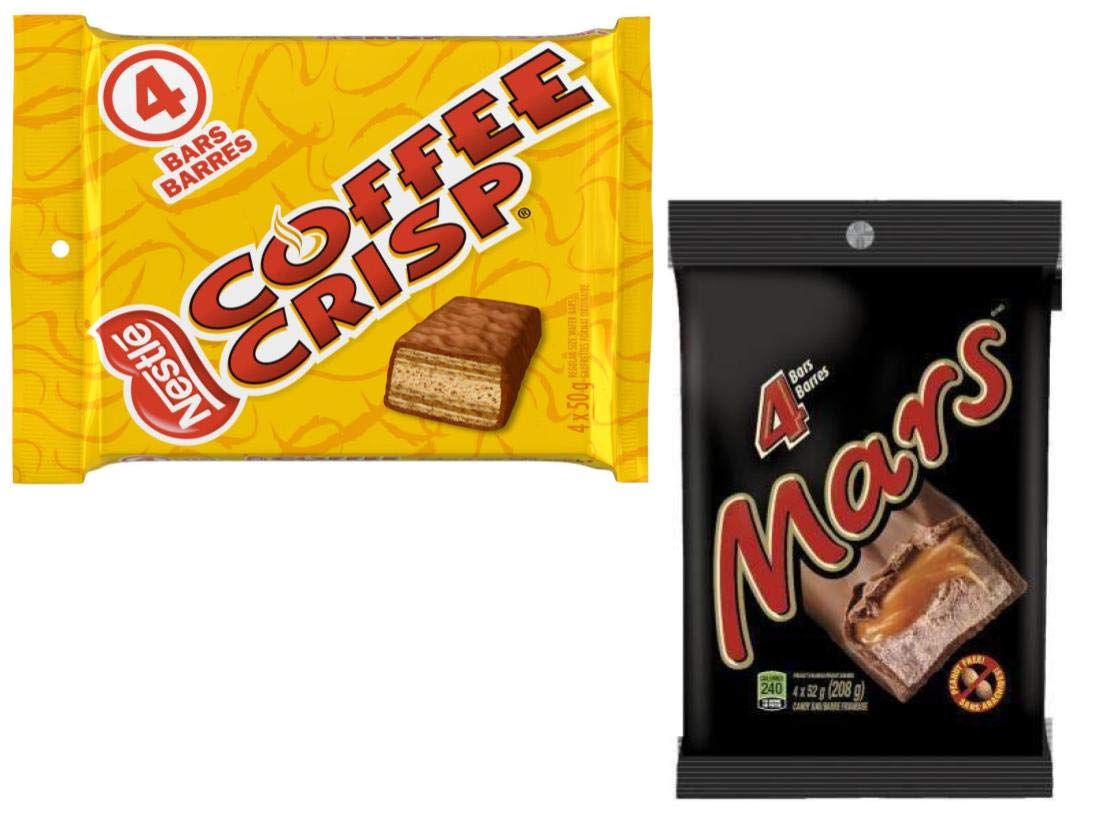 Discover the delectable Canadian Candy bundle featuring 4 Coffee Crisp Chocolate Bars and 4 Mars Bars. Imported from Canada, this 2-package bundle is the perfect treat for chocolate lovers.