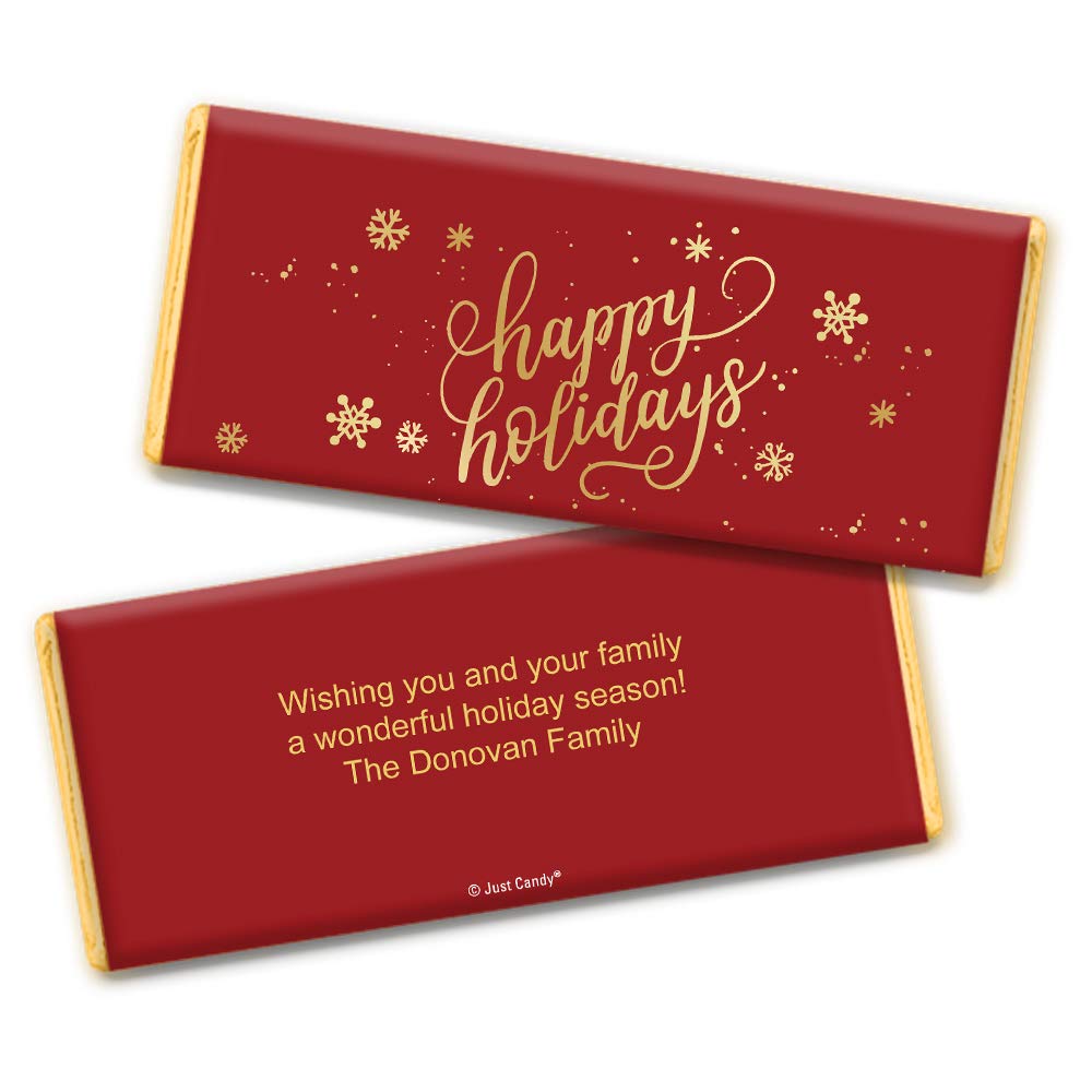 Add a festive touch to your holiday treats with these Christmas Candy Personalized Happy Holidays Wrappers for Candy Bars! Each pack includes 25 wrappers designed by Just Candy, perfect for 12 wrapped bars. Make your celebrations even sweeter with these delightful wrappers.