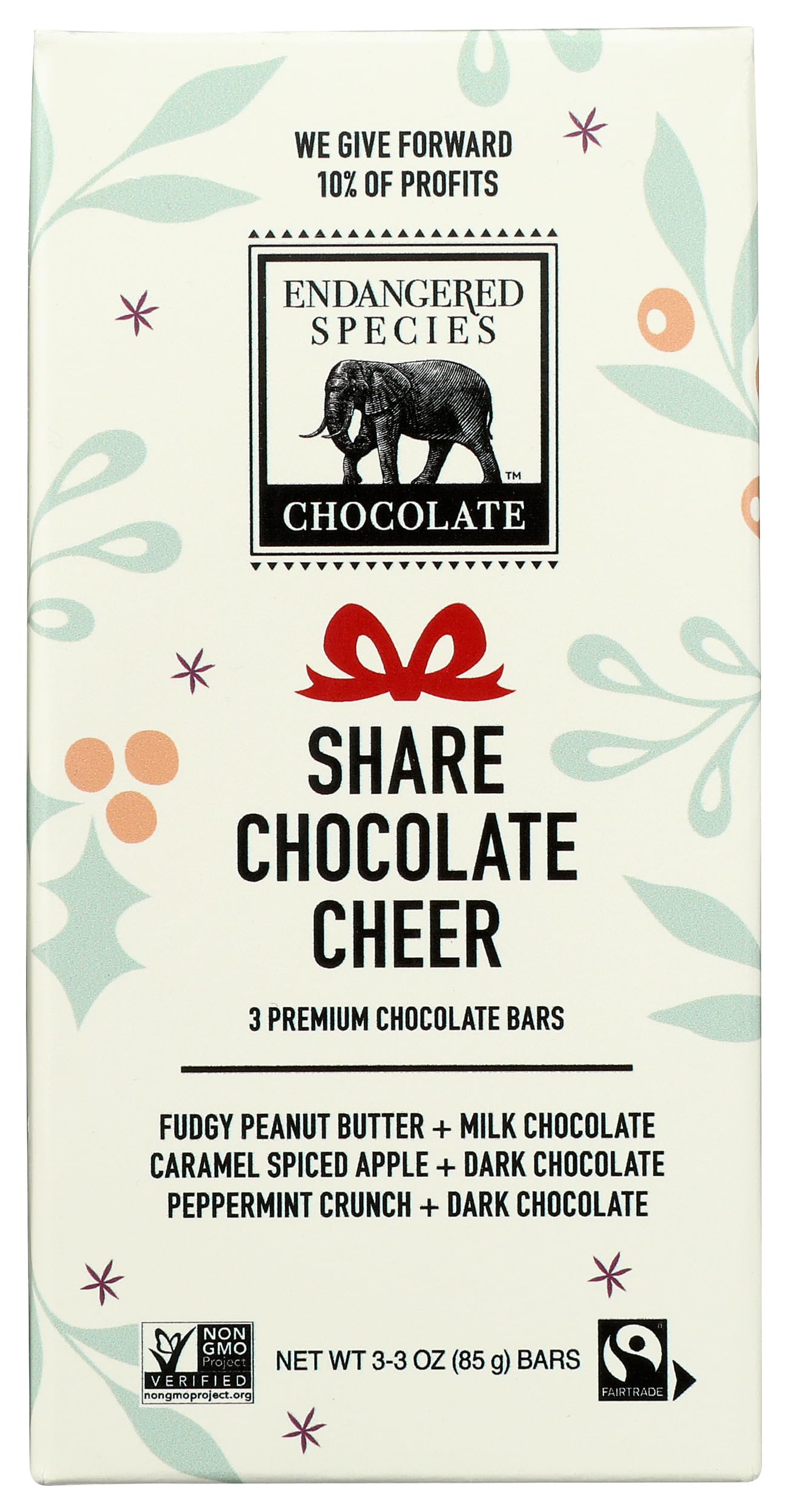 Indulge in the rich flavor of Endangered Species 48% Cocoa Fudgy Peanut Butter Milk Chocolate Bar. Made with non-GMO ingredients, each 3-ounce bar is a delightful treat for chocolate lovers. Pack of 12 for sharing or stocking up.