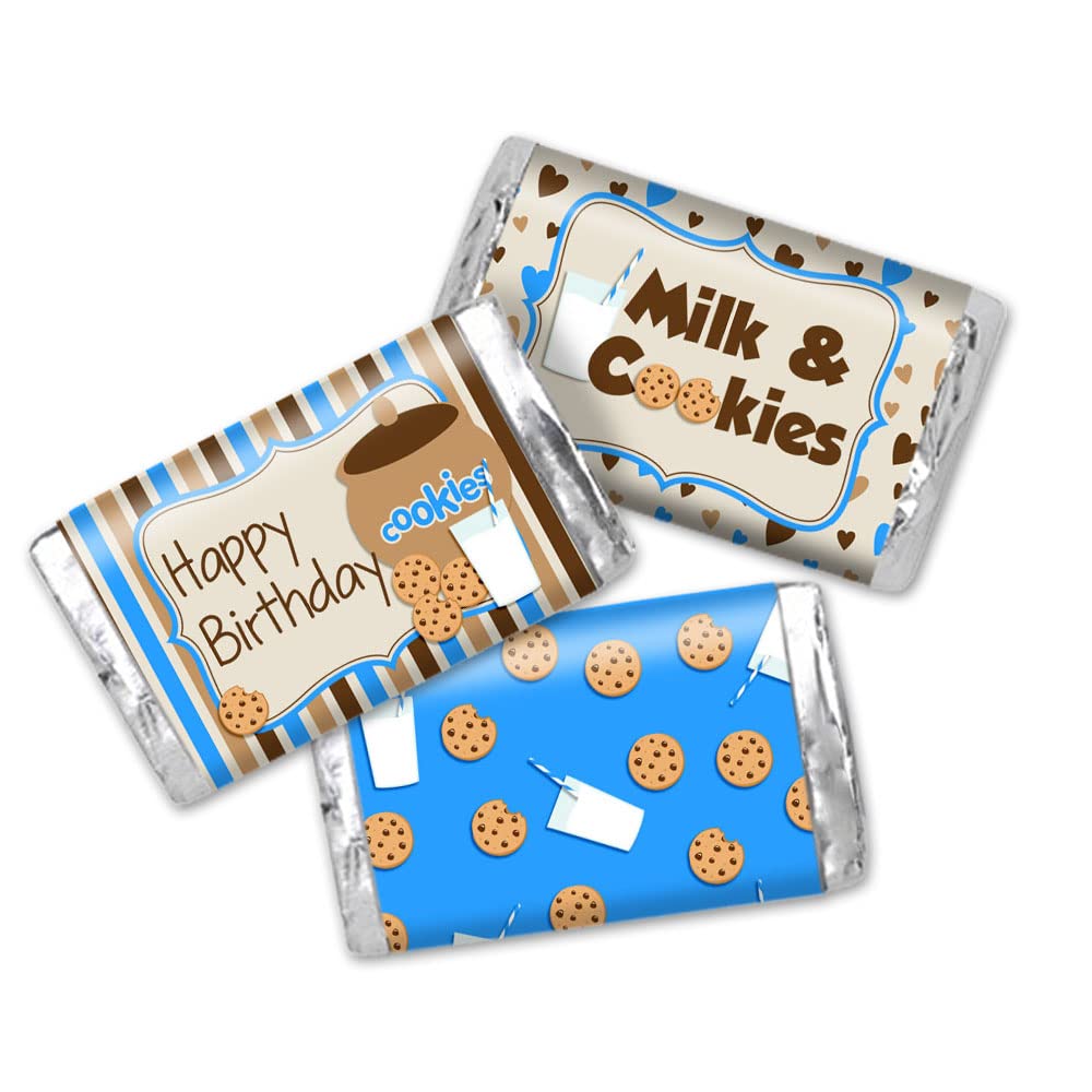 Milk and Cookies Boy Birthday Mini Chocolate Candy Bar Sticker Wrappers by AmandaCreation, 45 Labels