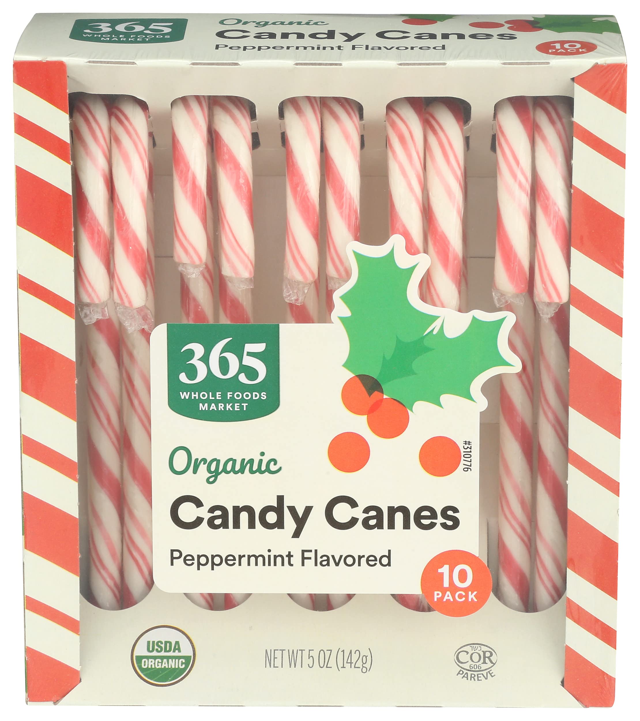 Introducing the delightful Organic Candy Canes by 365 by Whole Foods Market. Each package contains 10 candy canes weighing a total of 5 ounces, making them the perfect addition to your holiday festivities. These candy canes are not just a treat; they embody the spirit of the season with their delicious organic peppermint flavor.