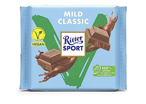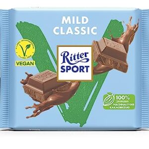 Features: | Vegan chocolate that tastes like a classic milk chocolate. With the new Ritter Sport Vegan range, you choose taste without any compromise. How delicious can vegan chocolate actually be? Our new Ritter Sport Vegan range gives you the enjoyable tasty answer. It’s made for all those who don’t want to give anything up – especially not indulging yourself! Our vegan chocolates are just as delicious as our classic whole milk varieties. 100% Certified Sustainable Cocoa Sourcing. |